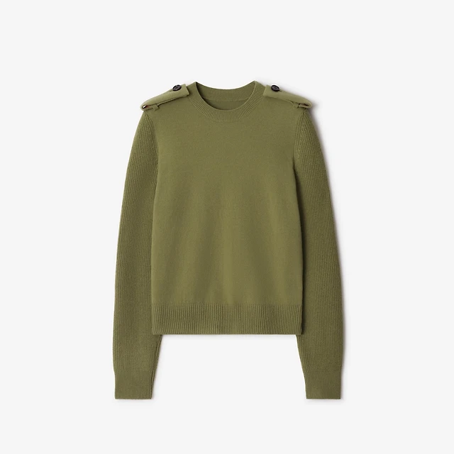 Check Epaulette Wool Cashmere Blend Sweater in Wreath - Women | Burberry® Official