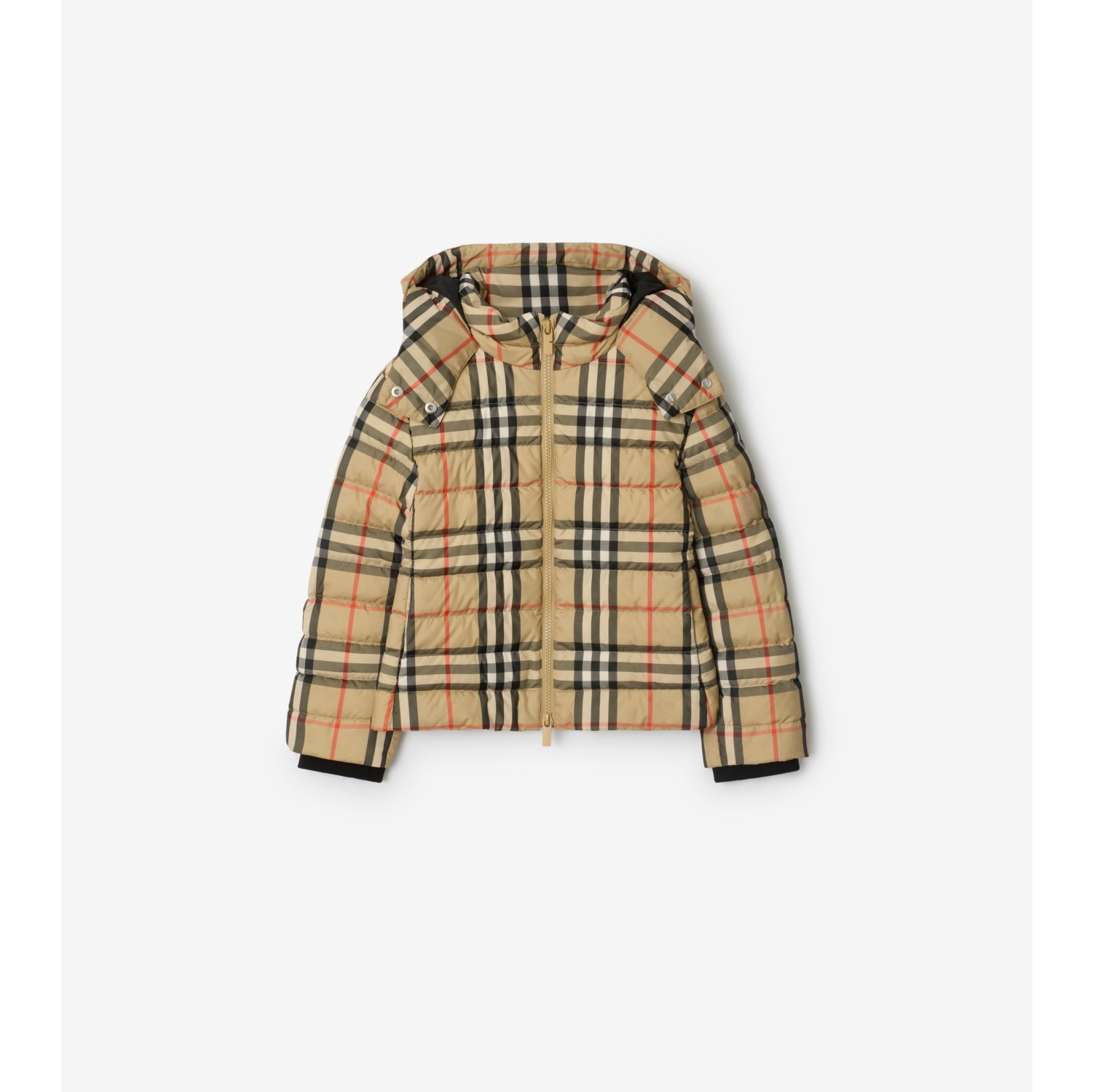 Check Hooded Puffer Jacket in Sand beige | Burberry® Official