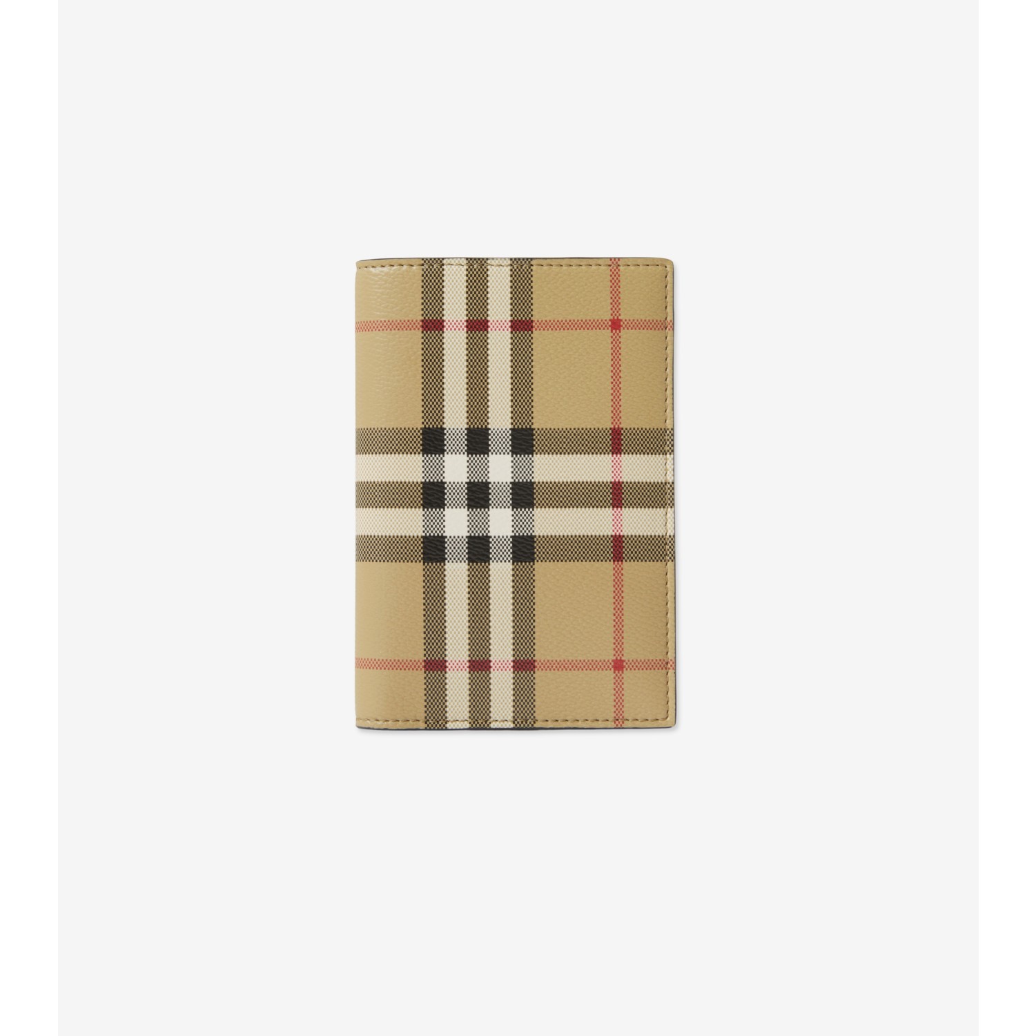 A bifold passport holder made from a coated cotton blend printed with the Burberry Check. The design is lined with smooth calf leather. Three card slots Two slip pockets Hand-painted edges Embossed Burberry lettering at inner Comes with a dust bag