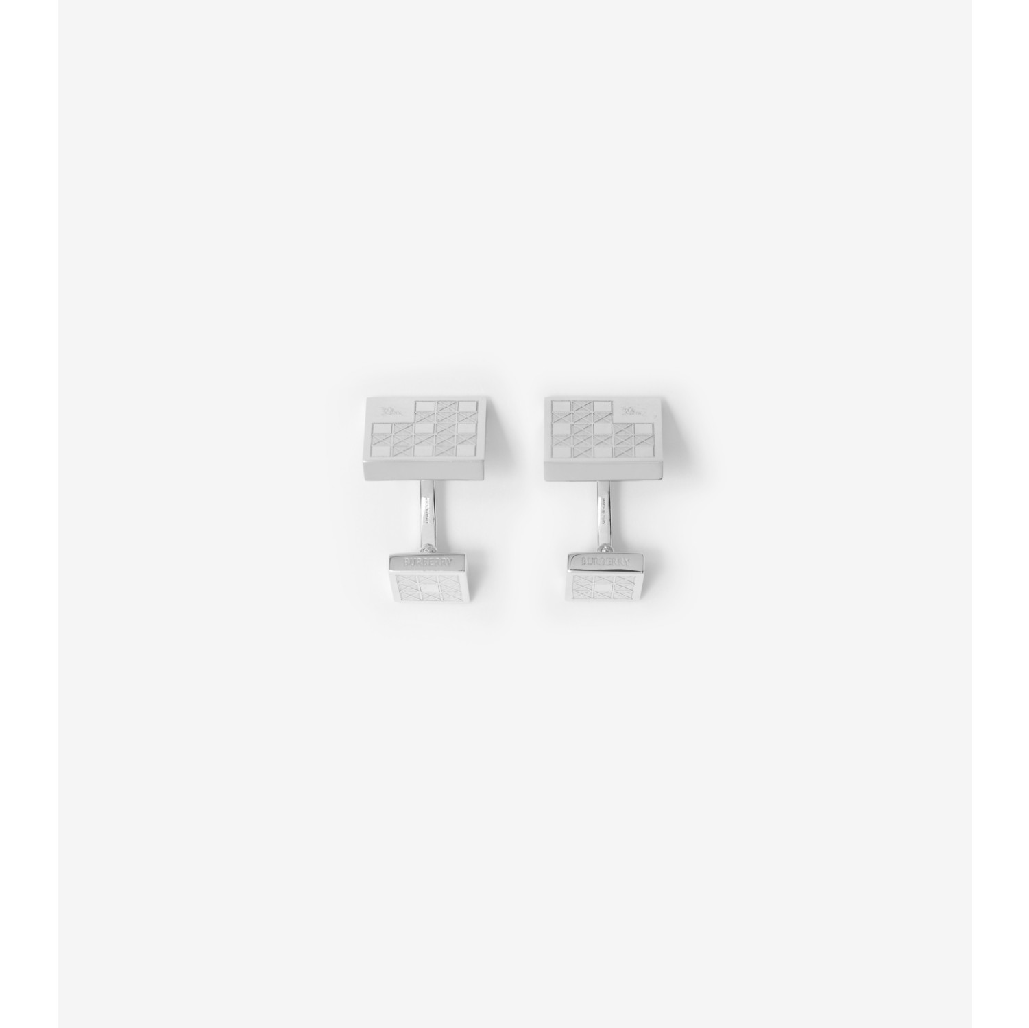 A pair of cufflinks made in Italy from sterling silver. The design is sculpted with a geometric check and our Equestrian Knight Design. Engraved Burberry lettering at back Comes with a dustbag