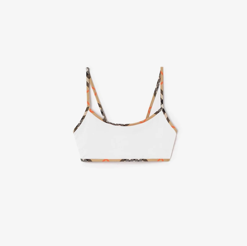 Check Trim Bikini Top in White - Women, Wool | Burberry® Official