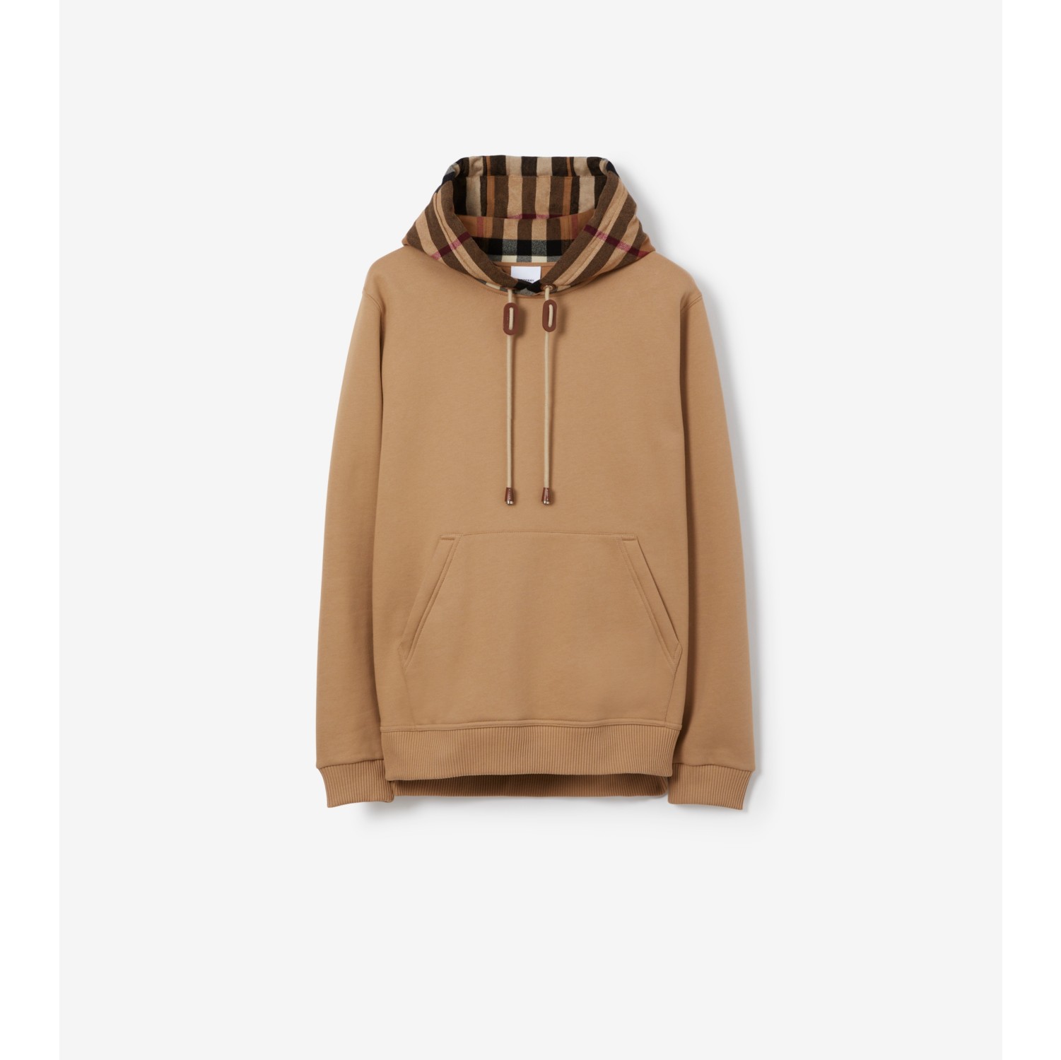 Check Trim Cotton Blend Hoodie in Camel - Men | Burberry® Official