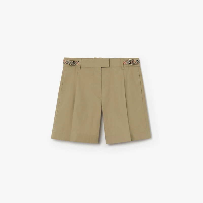 High-rise shorts made in Italy from cotton poplin, cut to a regular fit with front pleats. The style features Burberry Check trims in signature archive beige, with B buckles to adjust the waist. Pair with a jacket or blazer for a summery take on tailoring.