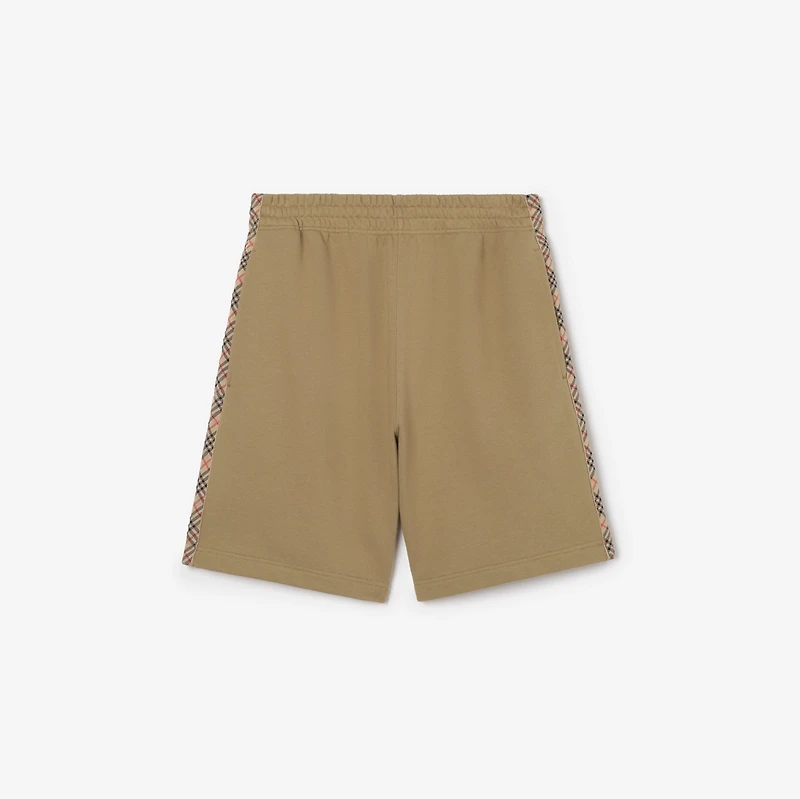 Check Trim Cotton Shorts in Sparrow beige - Men | Burberry® Official