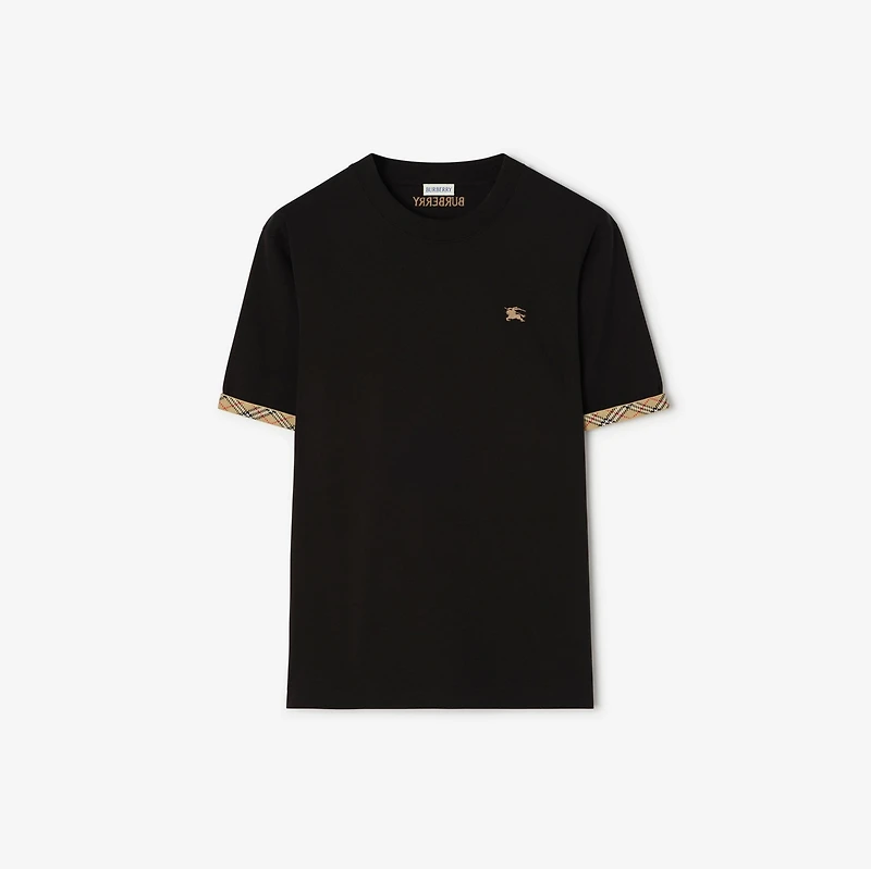 Check Trim Cotton T-shirt in Black - Men | Burberry® Official