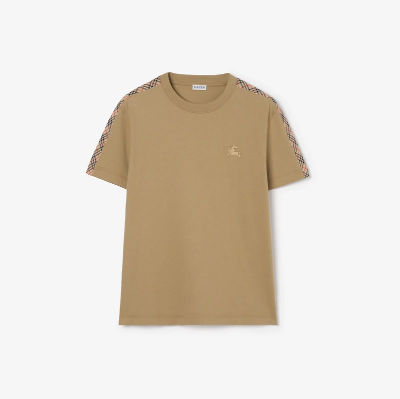 A T-shirt in lightweight cotton jersey, cut to a slim fit. The style is embroidered with the Equestrian Knight Design and framed with Burberry Check taping at the sleeves. Rib-knit neckline Embroidered Equestrian Knight Design at chest