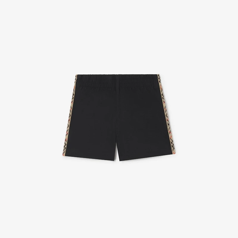 A pair of swim shorts made from lightweight nylon. The design is framed with Burberry Check taping in signature sand beige.
