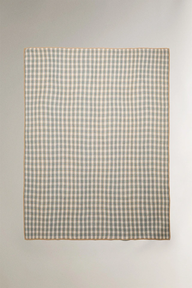 CHECK WAFFLE-KNIT BLANKET
