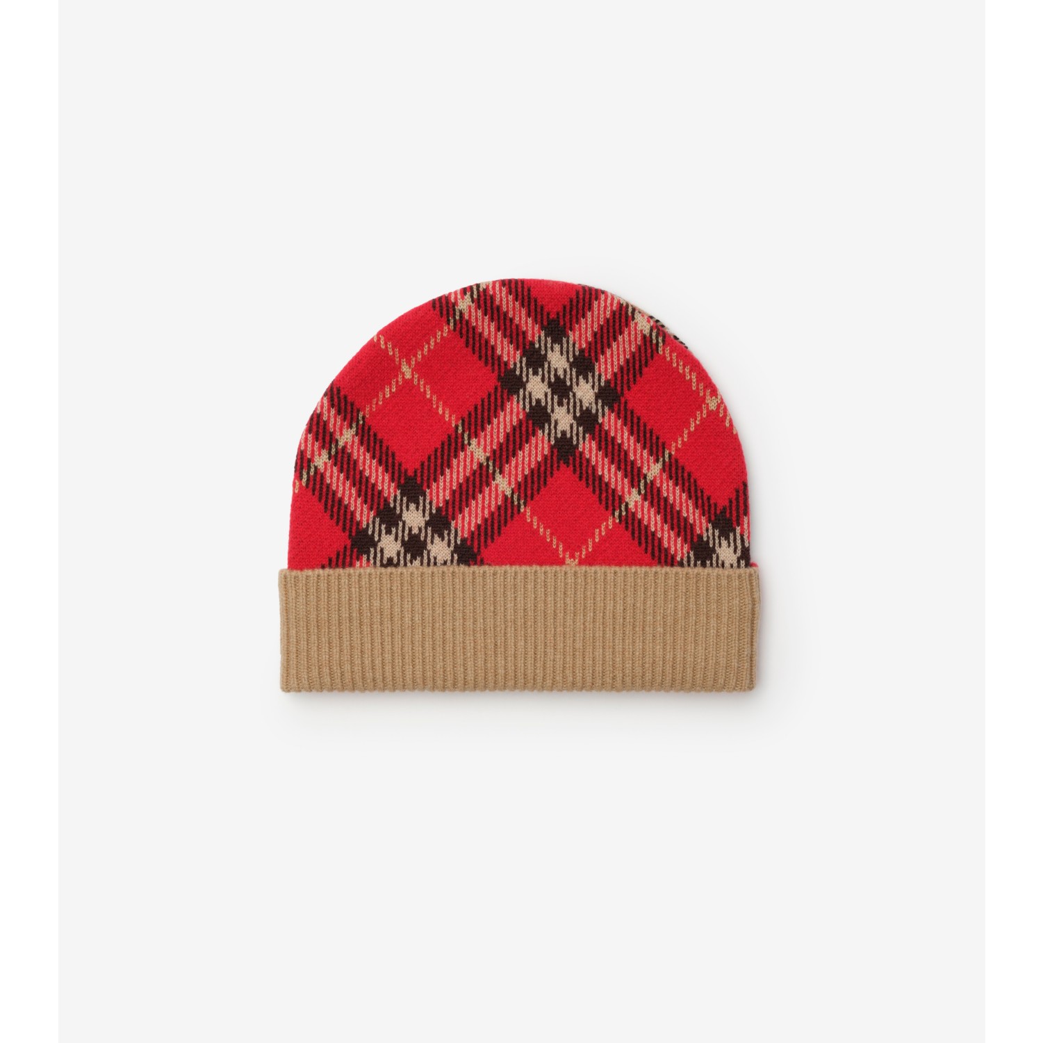 A colour-block beanie in wool, knitted with the Burberry Check in seasonal crayon red and signature sand beige. The design was created as part of our Year of the Horse capsule. Rib-knit brim
