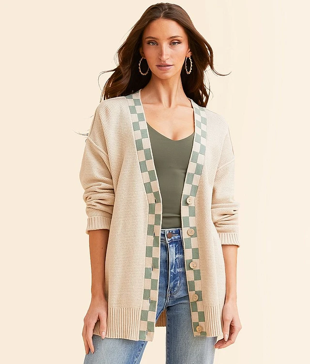 Checker Trim Cardigan Sweater