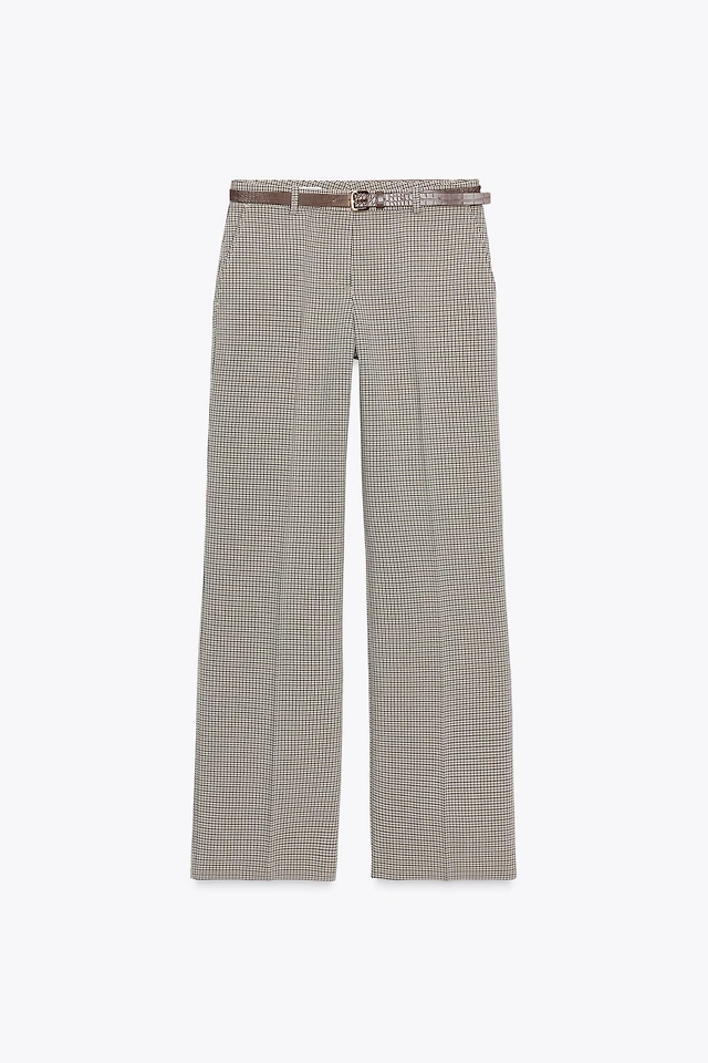 CHECK BELTED PANTS
