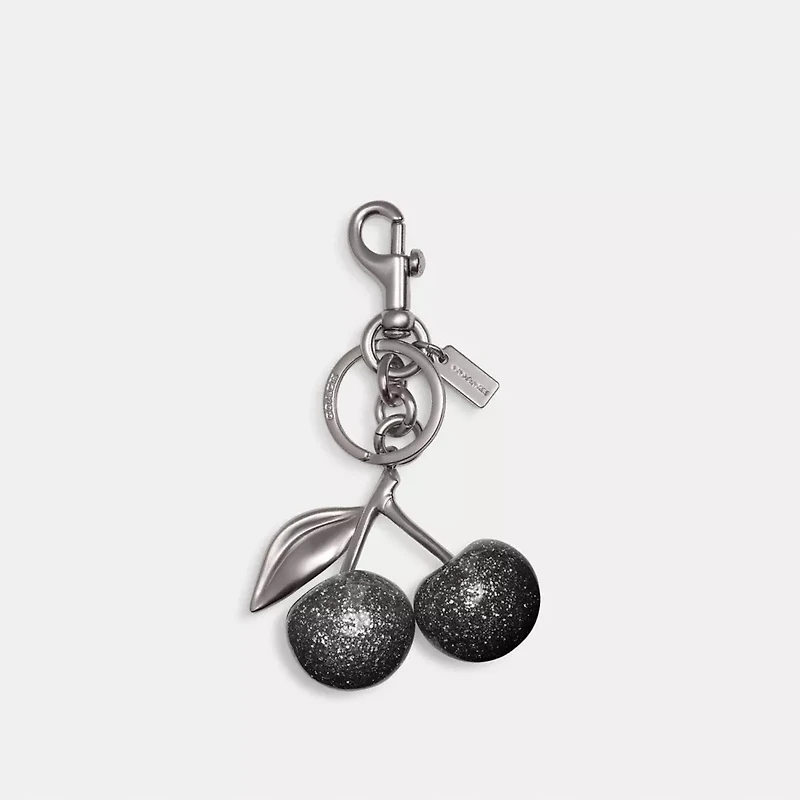 This summery bag charm features a retro-cool cherry motif in glittery resin. Clip it to a favorite bag or set of keys for refreshing style.