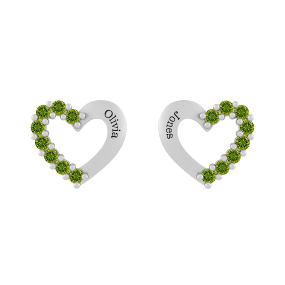 Children's Birthstone Heart Earrings (1 Stone and 2 Lines)