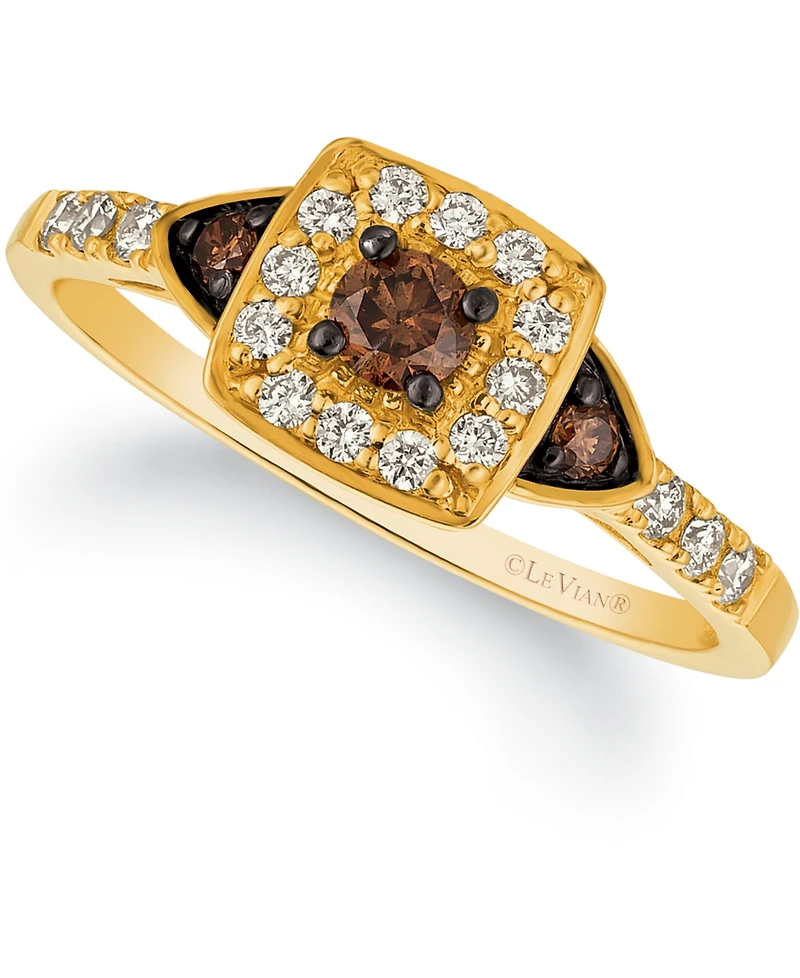 Shape up with a hint of sparkle. Le Vian's chic cocktail ring, in a 14k rose, yellow or white gold square setting, highlights both round-cut white diamonds (1/5 ct. t.w.) and chocolate diamonds (1/5 ct. t.w.). Size 7.
