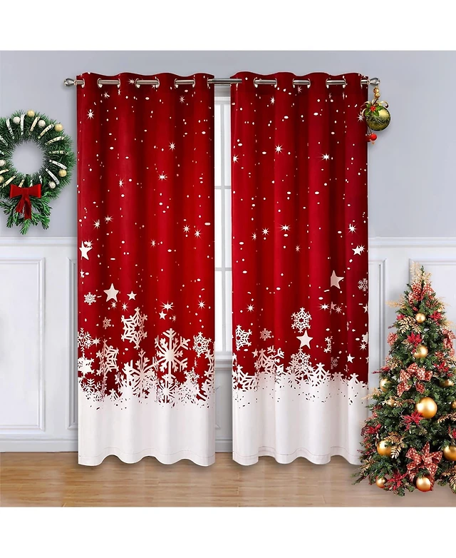 Christmas Curtains, Set of 2 Velvet Panels for Living Room, 84" Long Floral Snowflake Thermal Insulated Room Darkening Curtains, 52 x 84 Inches