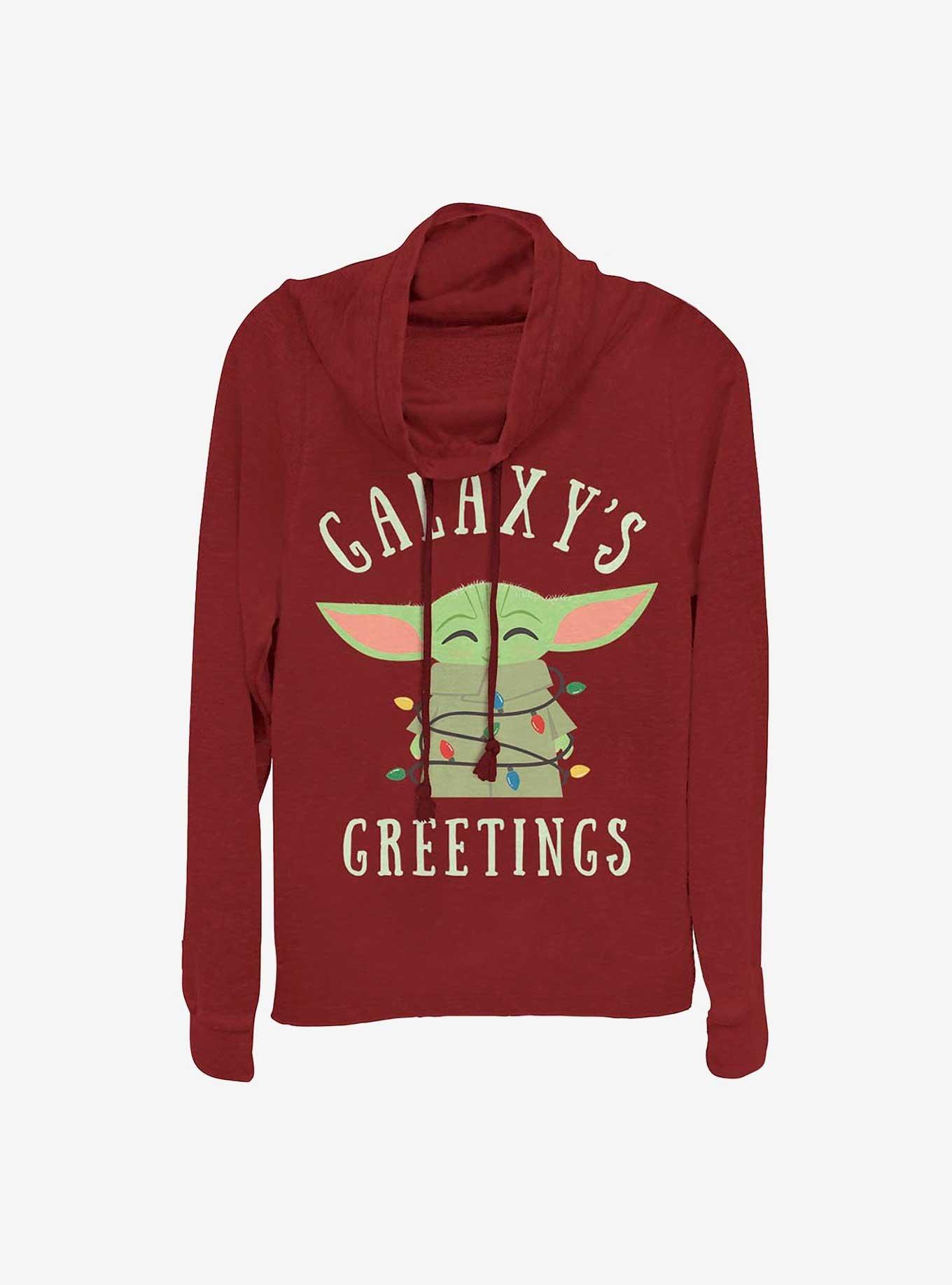 Star Wars The Mandalorian Christmas Lights Girls Cowl Neck Long Sleeve Top