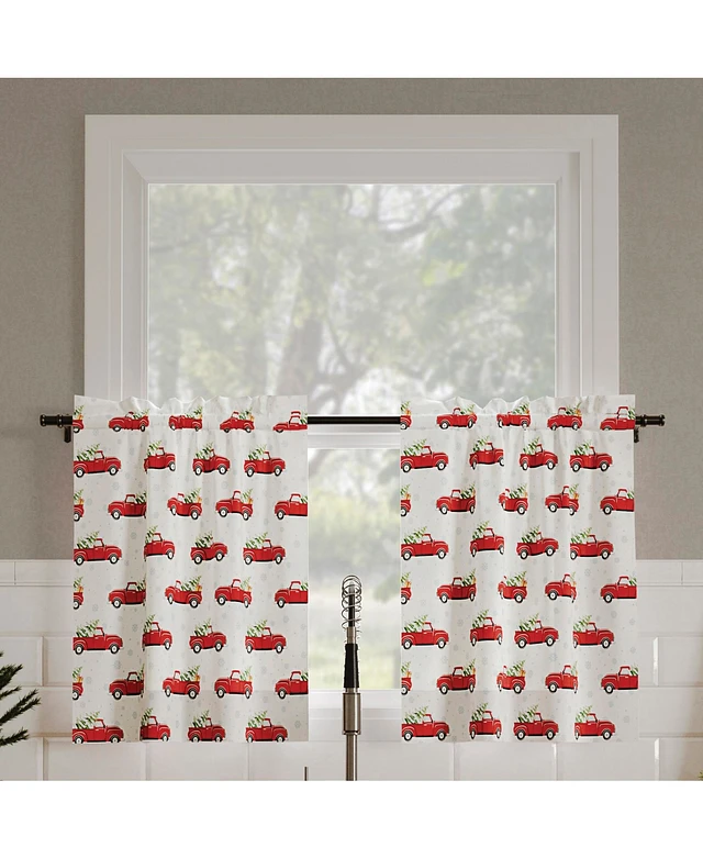 Christmas Pickup Truck Semi-Sheer Rod Pocket Kitchen Curtain Tier Pair