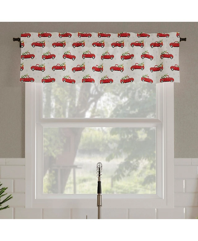 Christmas Pickup Truck Semi-Sheer Rod Pocket Kitchen Curtain Valance