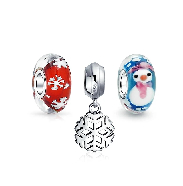 Christmas Snowman Snowflake Murano Glass Mix Set Of 3 Sterling Silver Spacer Dangle Bead Bundle Fits European Charm Bracelet
