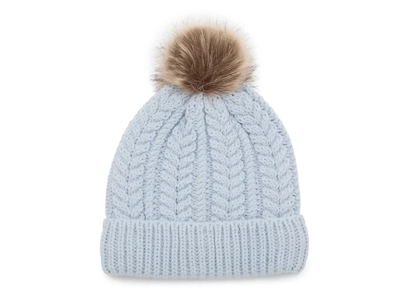 Cozy up in timeless charm. The Chunky Knit Pom Beanie by Fireside features a classic cable knit texture and a soft faux fur pom-pom, blending warmth with winter-ready style. Whether you're relaxing indoors or heading out into the cold, it's your go-to for effortless comfort.