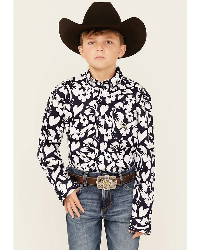 Cinch Boys' Floral Print Long Sleeve Button-Down Western Shirt