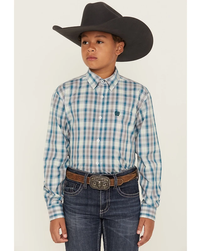 Cinch Boys' Plaid Print Long Sleeve Button-Down Western Shirt