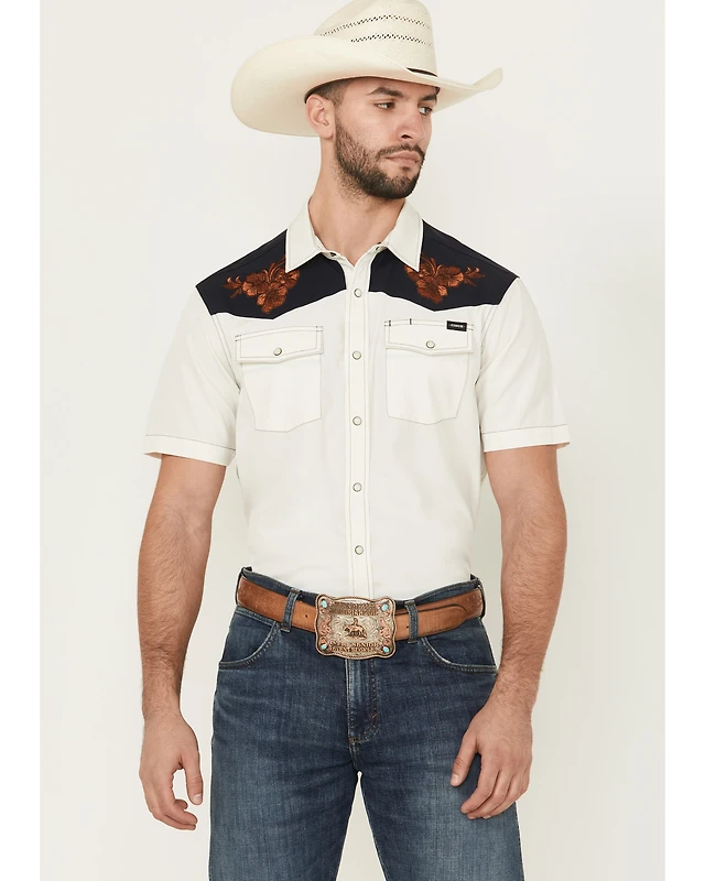 Cinch Men's Embroidered Flowers Short Sleeve Snap Western Shirt