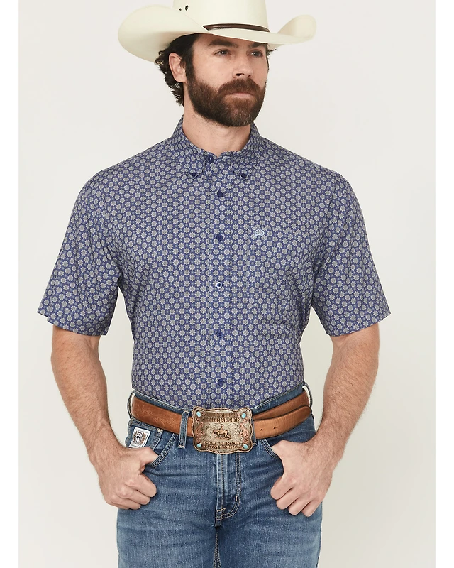 Cinch Men's Geo Print Short Sleeve Button-Down Stretch Western Shirt