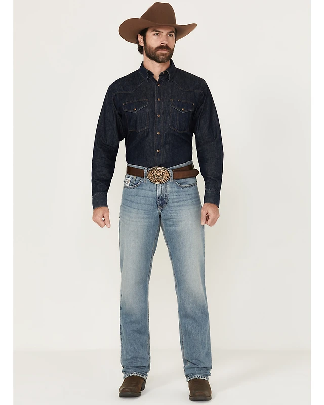 Cinch Men's Black Label Medium Wash Loose Tapered Rigid Denim Jeans