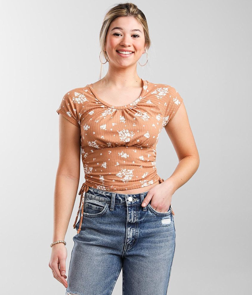 Ribbed floral print top Bust measures 26" on size small Body length 16" on size small The FITZ + EDDI brand is designed for a a more petite guest Model Info: Height: 5'5" | Bust: 32 1/2" | Waist: 26 1/2" | Hip: 35 1/2" | Wearing Size: Medium