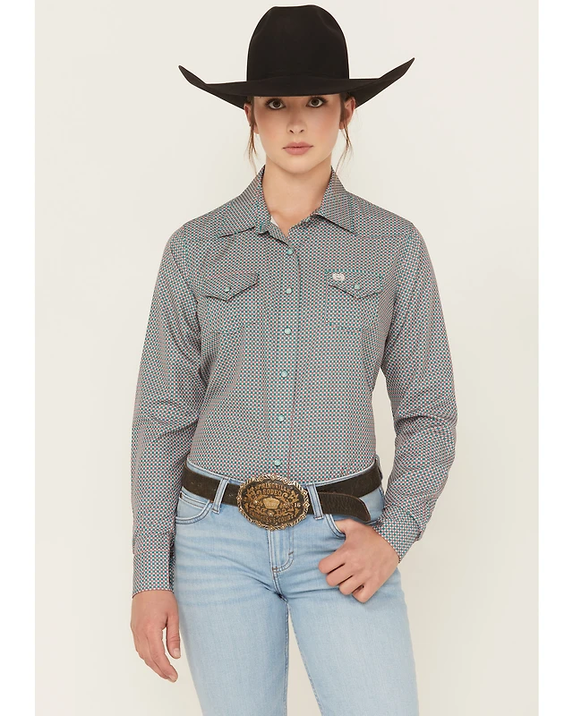 Cinch Women's Geo Print Long Sleeve Snap Stretch Western Shirt