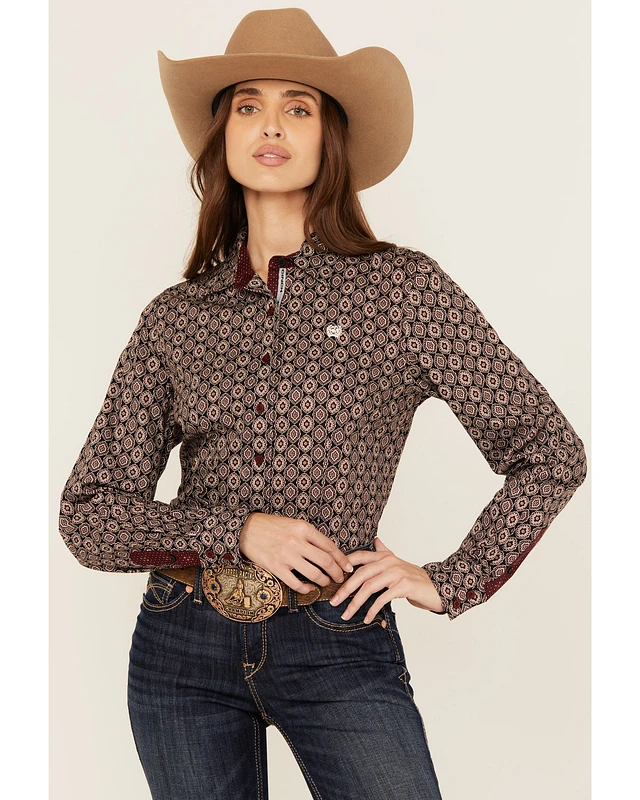 Cinch Women's Printed Long Sleeve Button Down Western Shirt