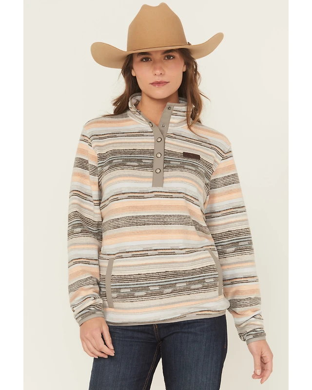 Cinch Women's Striped Print Polar Fleece Snap Pullover