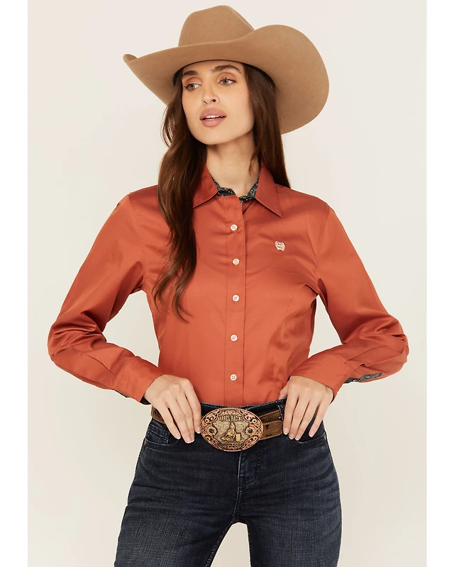 Cinch Women's Solid Long Sleeve Button Down Western Shirt