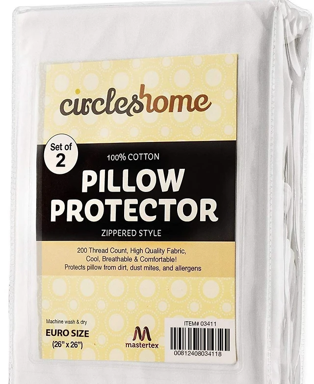 Circles Home European Size 100% Cotton Breathable Pillow Protector with Zipper – White (2 Pack)