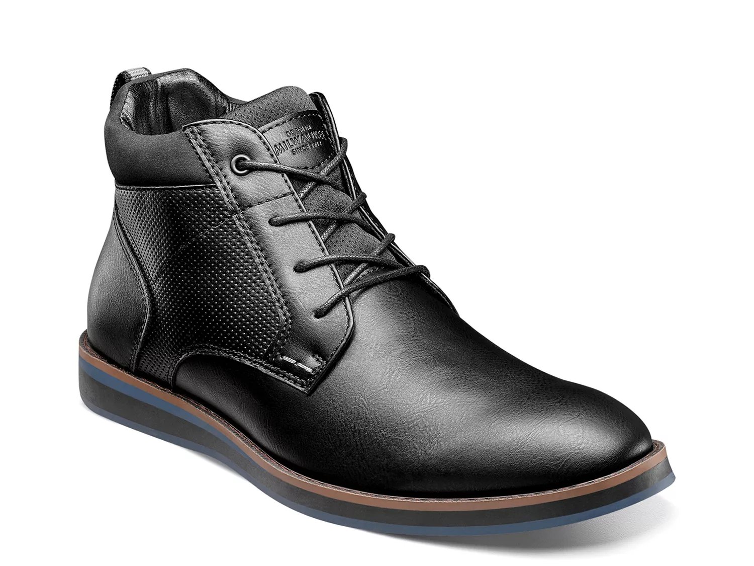 With rugged details to catch the eye, the Circuit plain toe chukka boot from Nunn Bush is a bold add to your look. Embossed details and padded features bring an outdoorsy quality to this pair, which beefs up your formals collection easily.