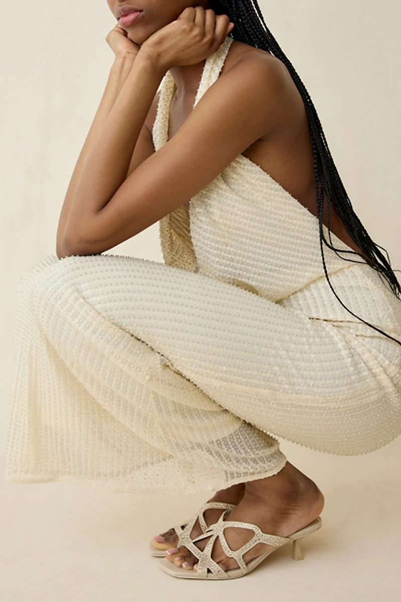 Sparkle and shine with these strappy sandals from Circus NY By Sam Edelman dotted with glistening crystal accents. Mules silhouette complete with a flared kitten heel for a femme finish to any look.