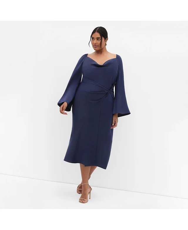 City Chic Women's Halle Long Sleeve Pleat Dress