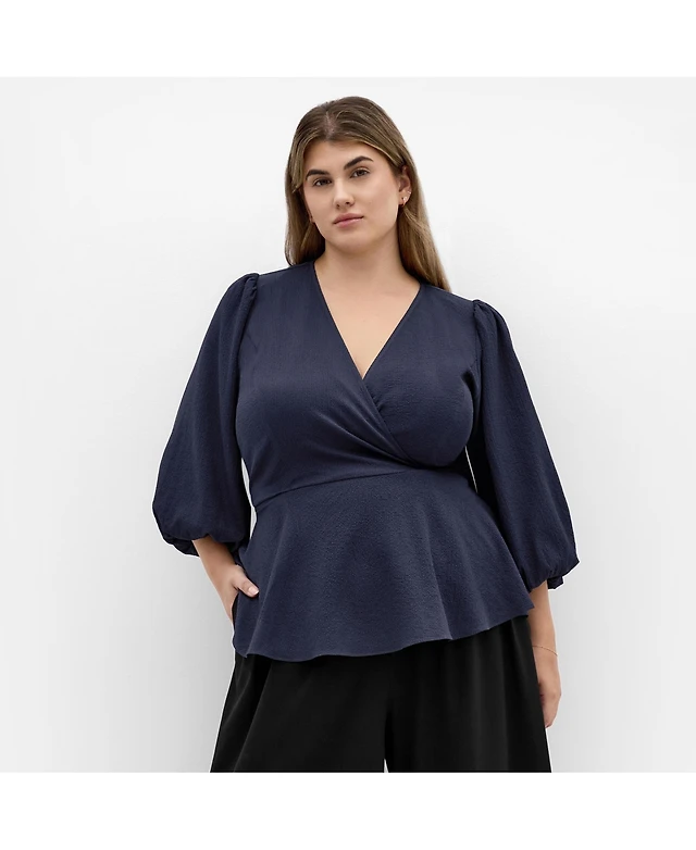 City Chic Plus Irina Shirred Peplum Top