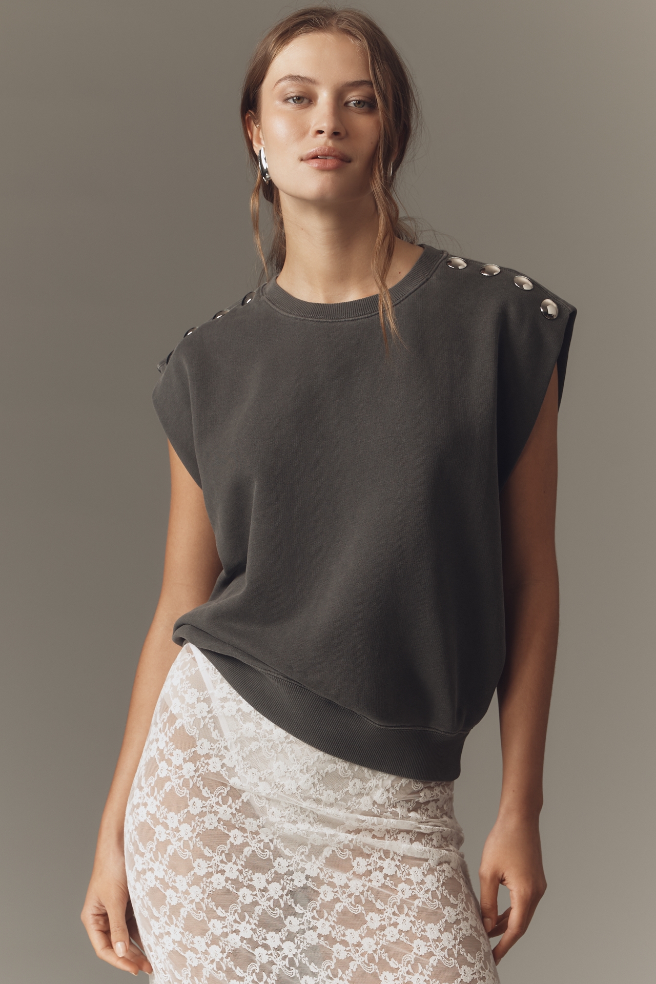 Whoa! You look cool in your Clare V. cap-sleeved fleece vest with cute studs at the shoulder seam.