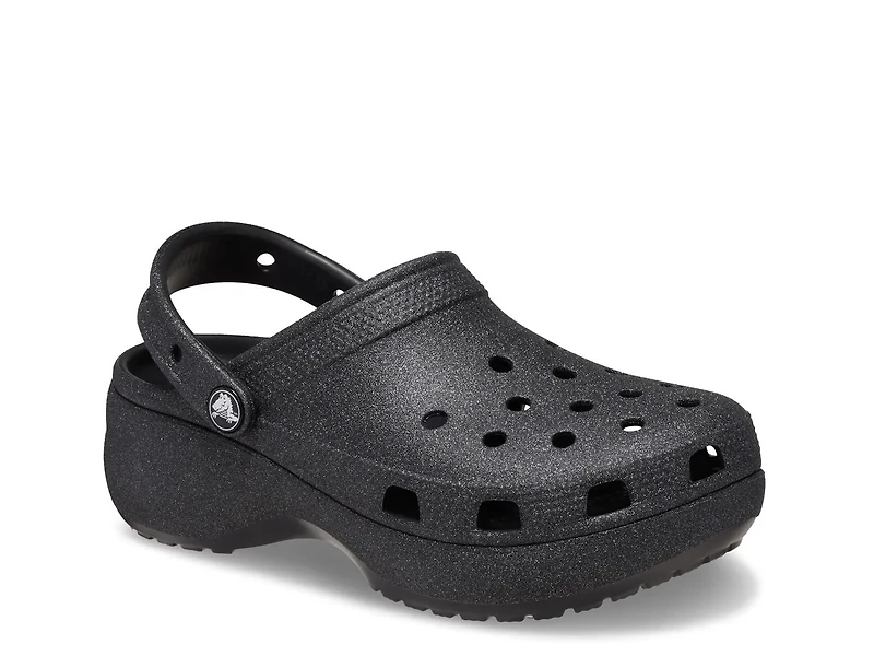 Groovy and glittery, the Crocs Classic Platform clog takes footwear fun to the next level. Iconic Crocs Comfort™ system makes the slip-on sandal lightweight and flexible while contoured outsole with traction pattern boasts elevation with stability.