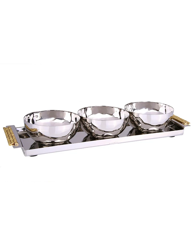 Classic Touch 3 Bowl Relish Dishes with 12" Rectangular Tray and Mosaic Handles