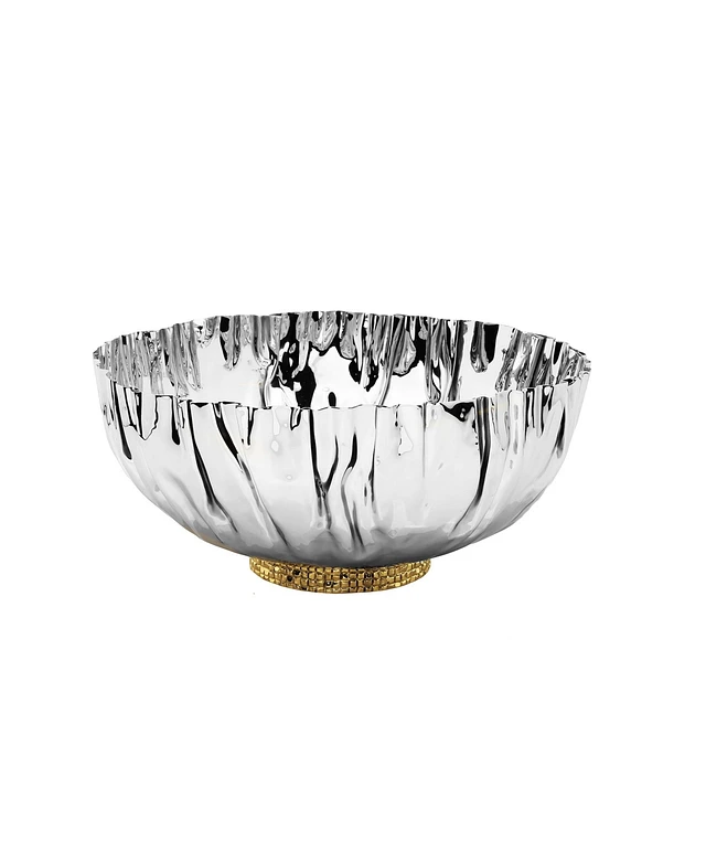 Classic Touch Stainless Steel Crumpled Bowl with Gold-Tone Mosaic Base