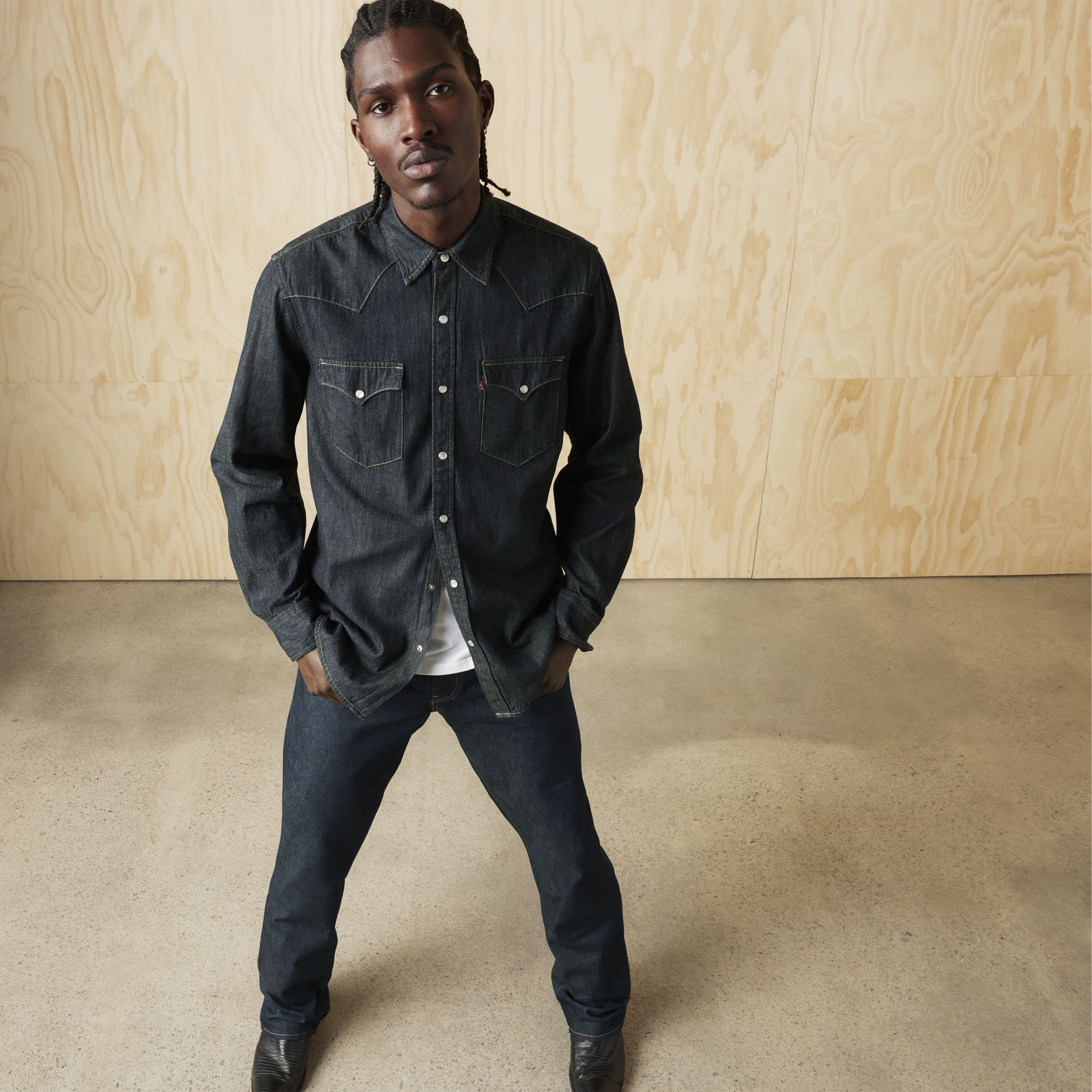 Cowboy boots and chaps not included. As a brand with deep roots in the American West, there's nothing we love more than this rugged-yet-put-together Classic Standard Fit Western Shirt. True to the classic, this essential features a distinctive snap placket, pointed yoke and curved hem. Pair it with your favorite blue jeans for the iconic denim-on-denim look, or size up and wear like a jacket—there are no rules in the Wild West.