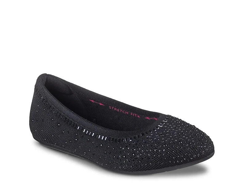 Embrace everyday elegance with the Cleo 2.0 Mesmerizing Nights ballet flat from Skechers. Made with 100% vegan materials, this stylish skimmer features an embellished knit upper crafted from at least 20% recycled content to promote sustainability. The Skechers Air-Cooled Memory Foam insole and the flexible traction sole ensure superior comfort all through the day.