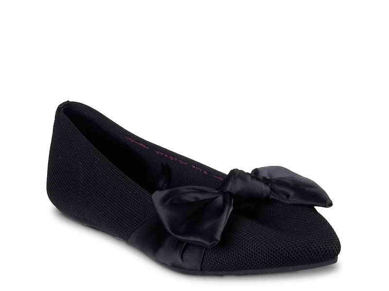 Lend a graceful look to your attire with the Skechers Cleo Point Classy flat. Beautiful knotted bow details on the vamp adorn this Stretch Fit slip-on designed with knit upper and Air-Cooled Memory Foam insole to offer breathable comfort. This Our Planet Matters Recycled style reduces environmental impact.
