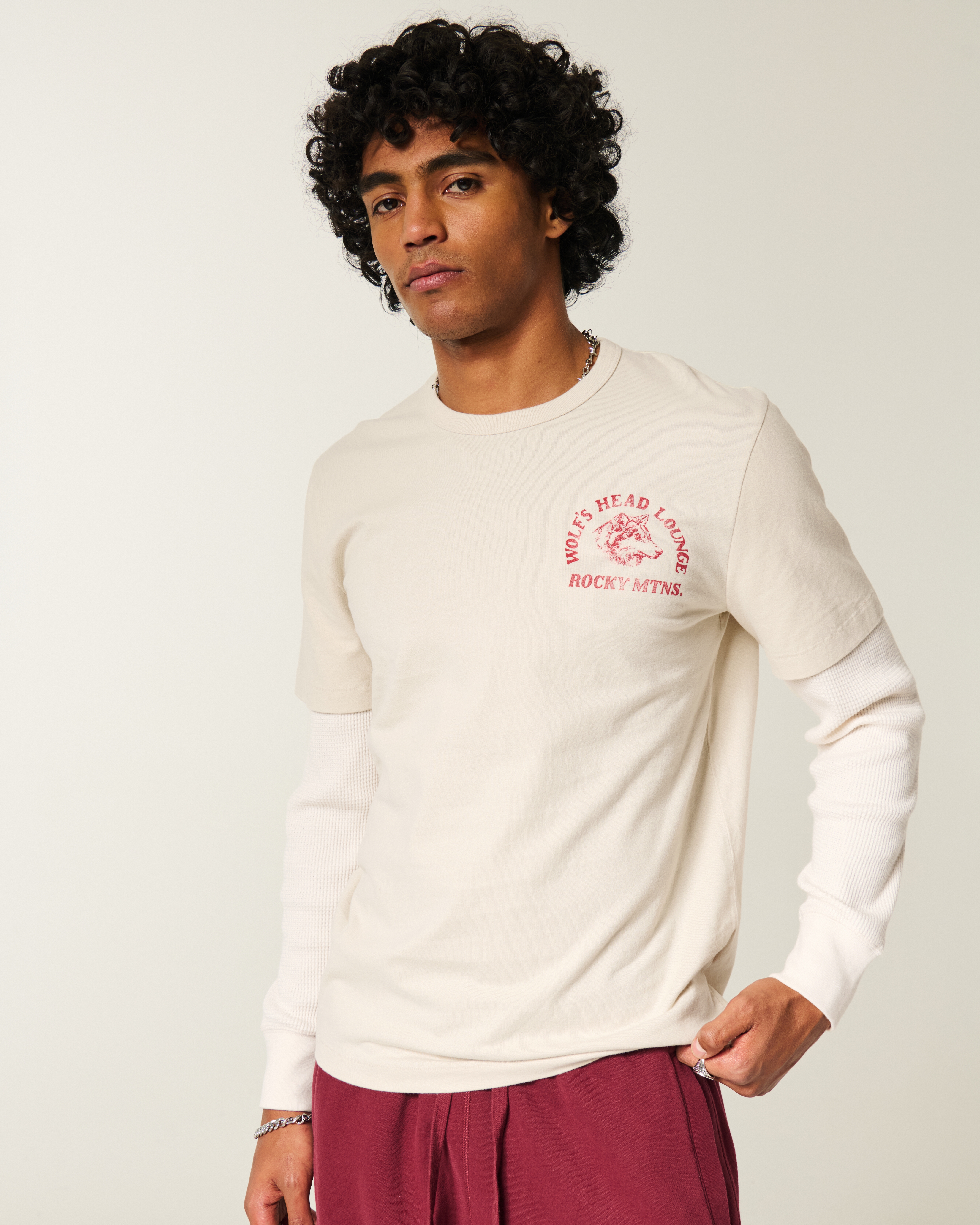 Layered Long-Sleeve Wolf's Head Lounge Graphic Tee