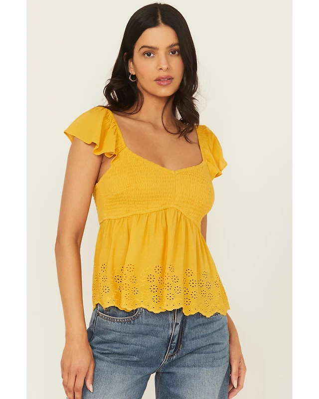 Cleo + Wolf Women's Knit Eyelet Smocked Crop Top