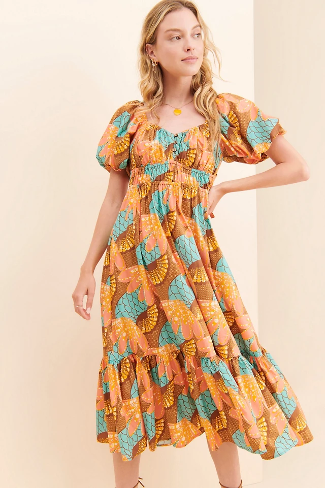 By Anthropologie Collared Short-Sleeve Midi Dress
