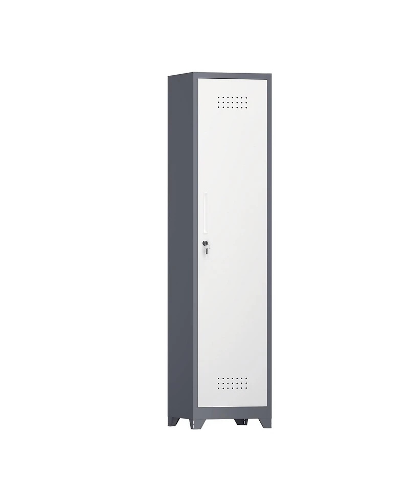Keep your cleaning supplies neatly organized with the 65" Narrow Broom Metal Cleaning Storage Cabinet with Hooks. The sturdy metal frame ensures long-lasting durability, while integrated hooks provide convenient hanging space for brooms, mops, dustpans, and other cleaning tools. Inside, ample room accommodates additional supplies like sprays and vacuums. Its sleek, compact design fits perfectly in laundry rooms, pantries, garages, or closets. Easy to assemble and built to hold heavy-duty gear—this cabinet brings order and efficiency to any home or commercial space.